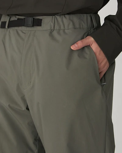 The 2L Octa Pants are insulated, water-resistant pants with high heat retention, windproofing, and a DWR finish. The face fabric is made from a stretchable ripstop polyester, with a polyurethane laminated internal layer for water-repellence and breathability. The 2L Octa Pants feature a front zip and snap closure with an integrated belt, dual seam pockets, back pocket, and tapered leg.