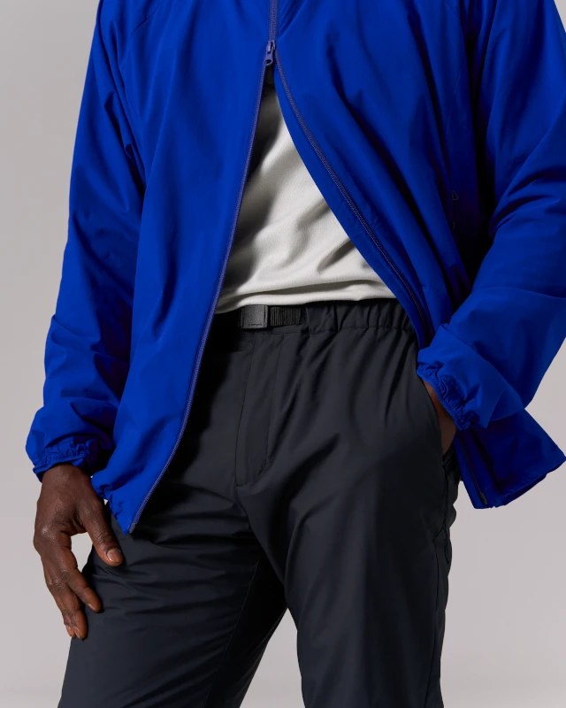 Crafted with a recycled polyester ripstop face fabric, this jacket features a sophisticated textured weave that is both durable and stretchable. The interior is lined with Polartec Alpha, providing a soft-touch insulating layer that breathes as you move. Visual accents include streamlined zippered pockets and structured elastic ribbing at the hood and cuffs for a modern, athletic silhouette.