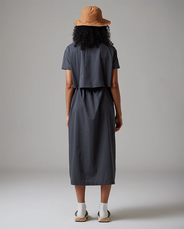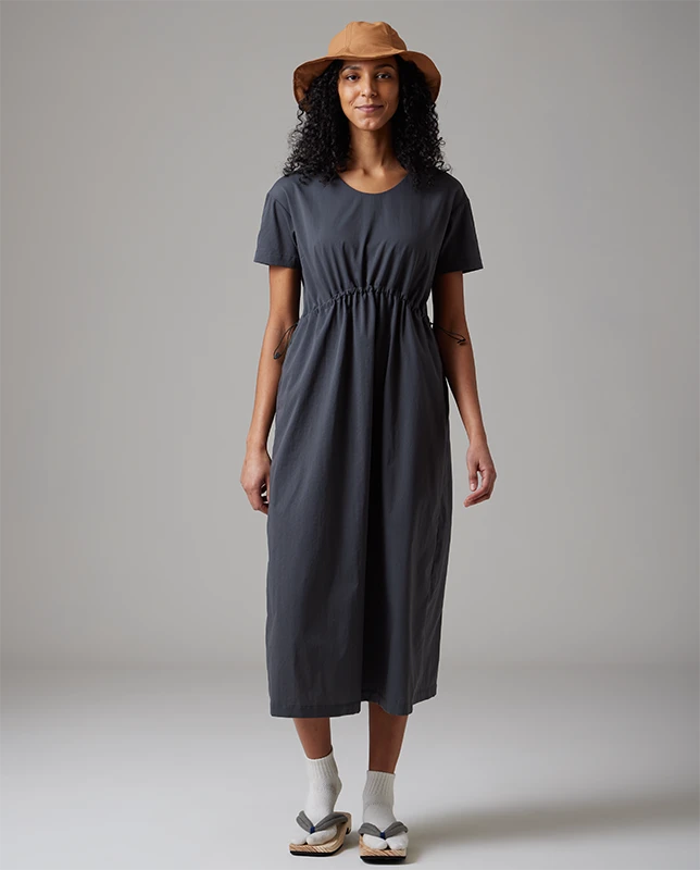 The Breathable Quick Dry Dress is an eco-conscious wardrobe essential designed for maximum airflow and comfort. Featuring a unique crepe texture, this dress is crafted from a high-tech blend of recycled plastic bottles and Toray®️ fibers, ensuring you stay dry and cool in any climate.