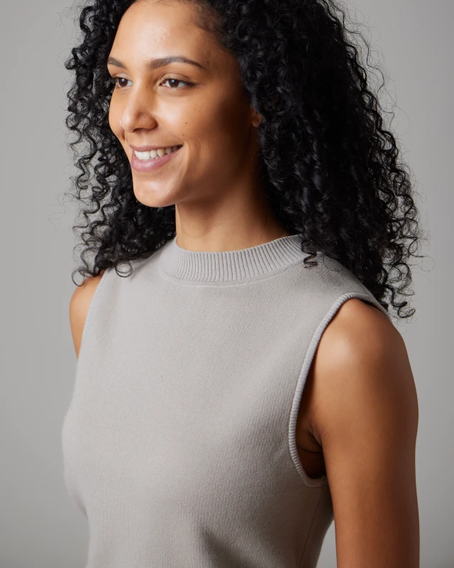 The Cotton Nylon Sleeveless Top is designed to drape the body with the hem hitting below the waist. We recommend taking your normal size for a Relaxed fit. The model stands 5’10 and wears size L.