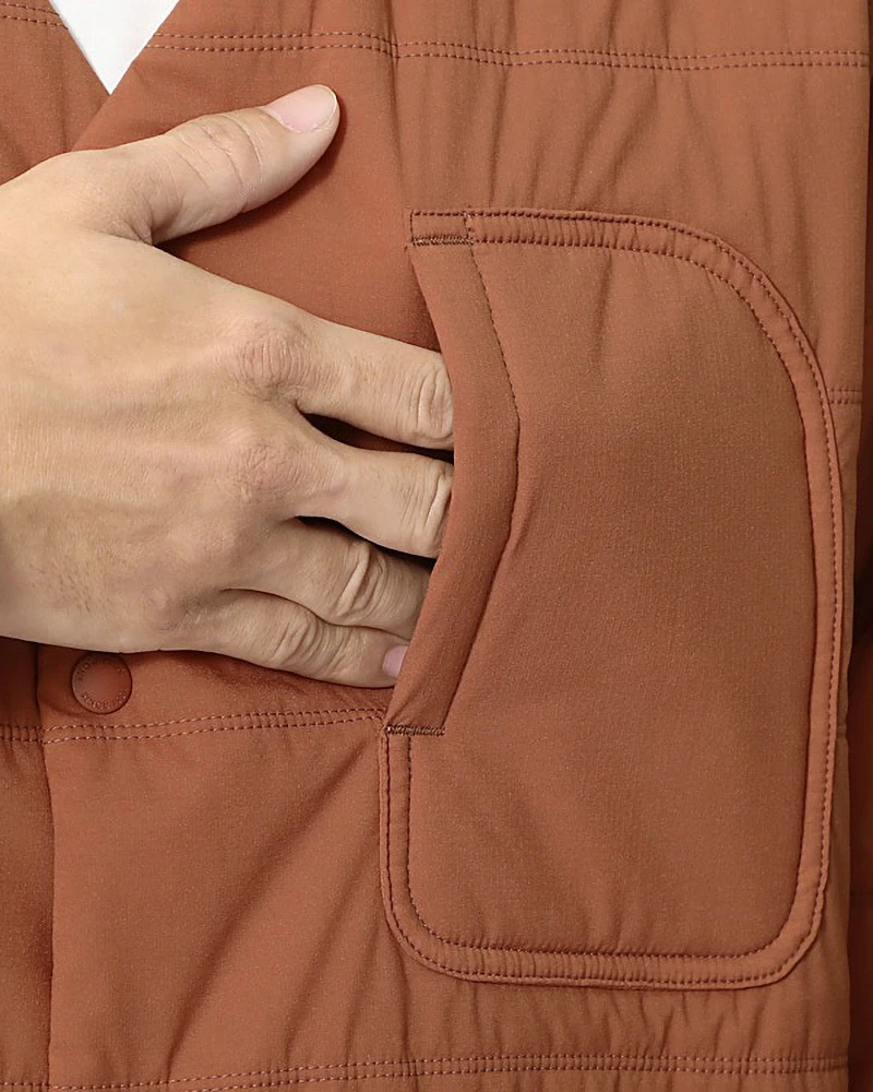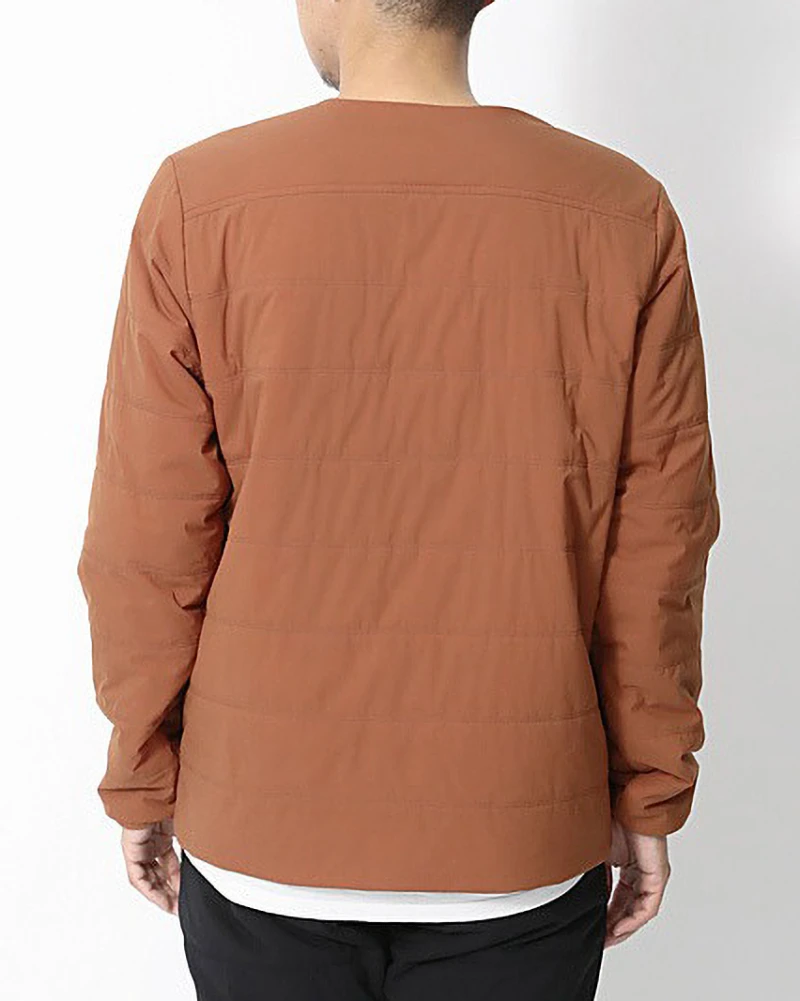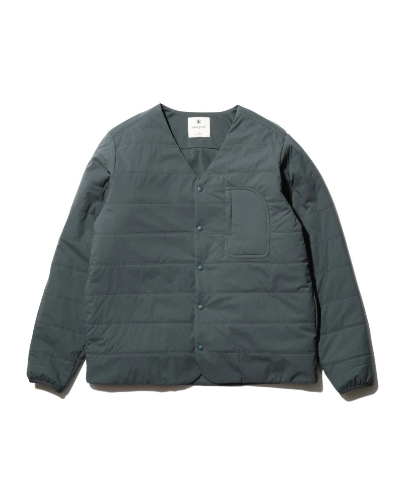 The Flexible Insulated Cardigan is a lightweight, insulated cardigan. The shell material offers stretchability, water resistance, and heat retention due to Primeflex® fabric and bio-based nylon. The lining is made of 100% recycled polyester, and the padding is 40% recycled material. The cardigan has a V-neck collar, full snap button closure, a left chest pocket, and two pockets at the waist. Pair the Flexible Insulated Cardigan with the
