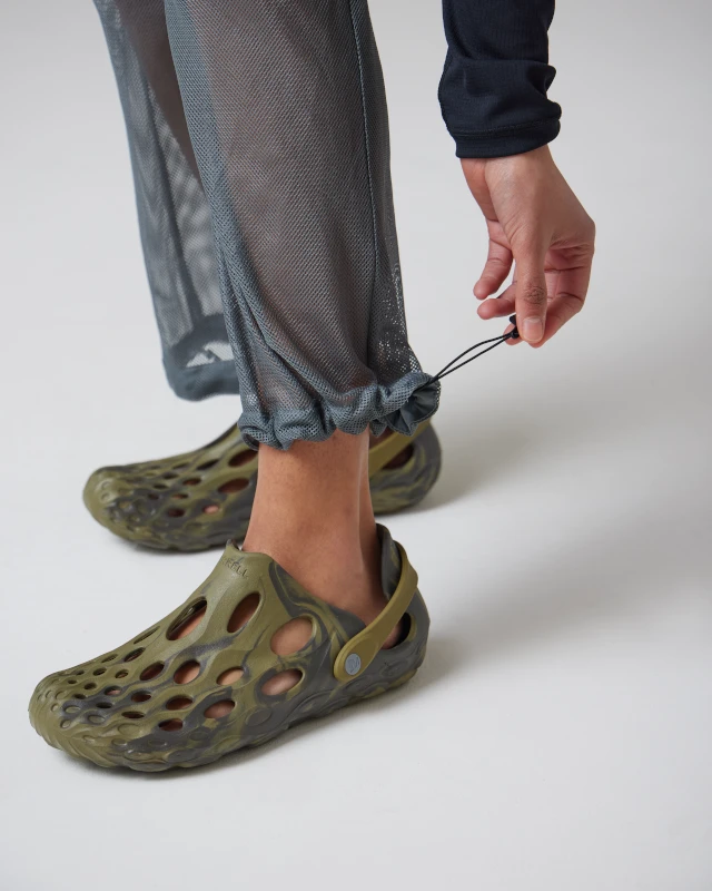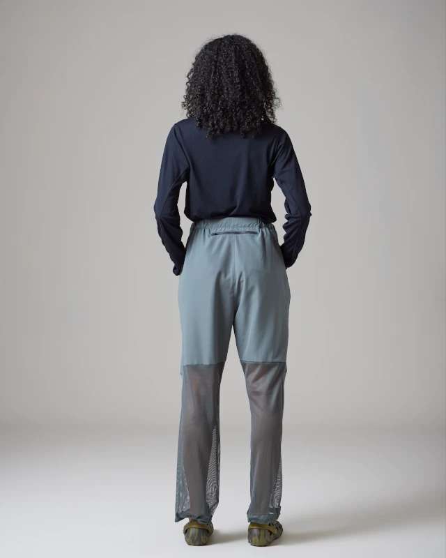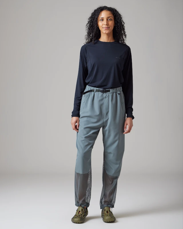 The Insect Shield Mesh Pants are breathable bug repellent shell pants. The fabric is made of 100% recycled polyester and has a stretchy mesh texture with reinforced knee pads. The Insect Shield Mesh Pants feature an enclosed belt at the waist, dual side pockets, and an adjustable hem with a draw cord.