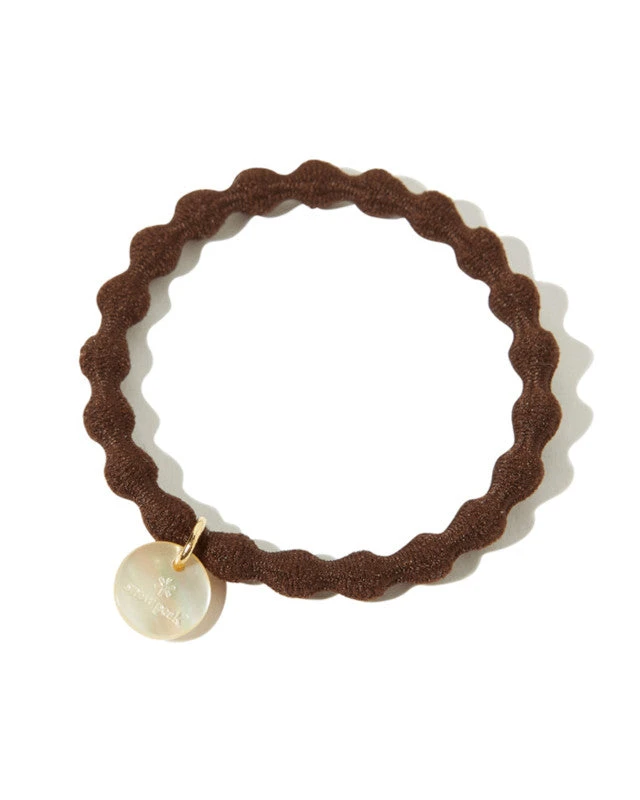 The Logo Hair Tie is an elastic hair band. It uses a wavy rubber to reduce hair stress and marks. The hair tie features a logo charm for decoration.