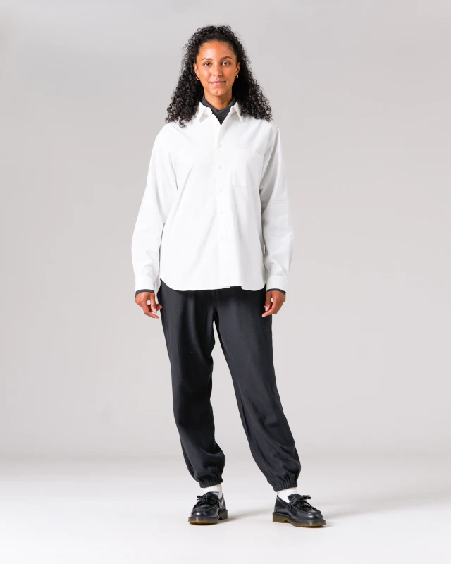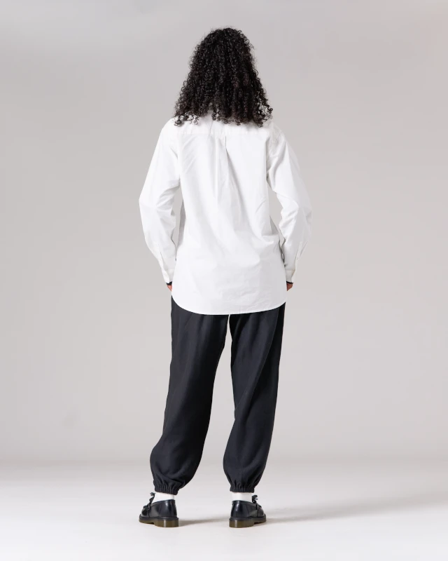 The Organic Cotton OX Shirt is a traditional collared button-front shirt. The shirt features a pocket on the front left breast, a folded collar, buttons at the front and on the cuffs, and a tuck at the back. The shirt is made from an Oxford cloth material, using 100% organic cotton.