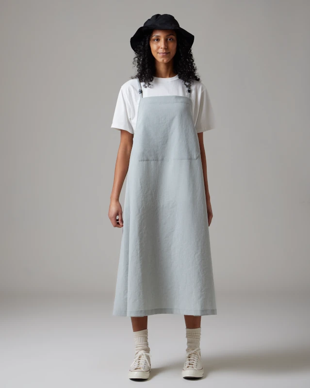 The Polyester Poplin Dress is a lightweight, quick-dry, and breathable midi dress designed for the modern, eco-conscious wardrobe. Crafted from recycled polyester with a unique stretchy crepe texture, this piece balances technical utility with a refined aesthetic.
