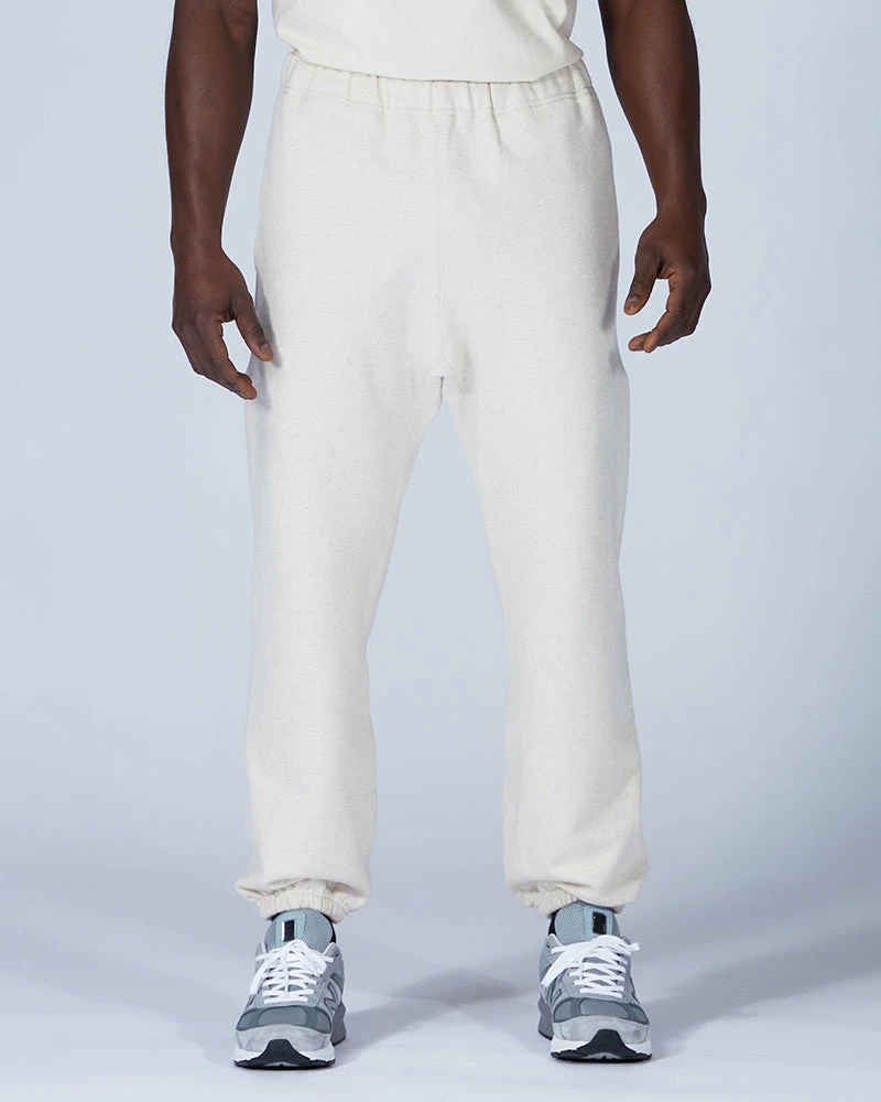 The Recycled Cotton Sweatpants are designed with a relaxed fit with the hem hitting below the anklet and loose in the leg. We recommend taking your normal size for a slightly oversized fit. The model stands 6′ and wears size M.