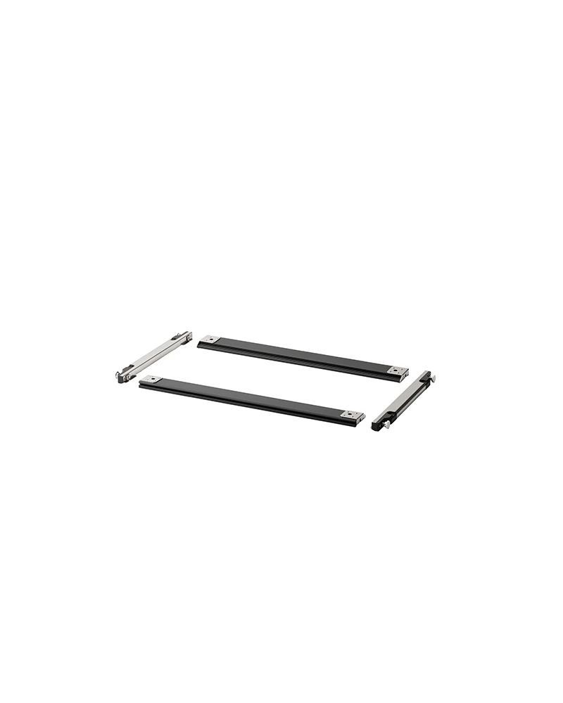 The collapsible frame design reduces storage size and offers additional modularity, with interchangeable rails in three sizes.