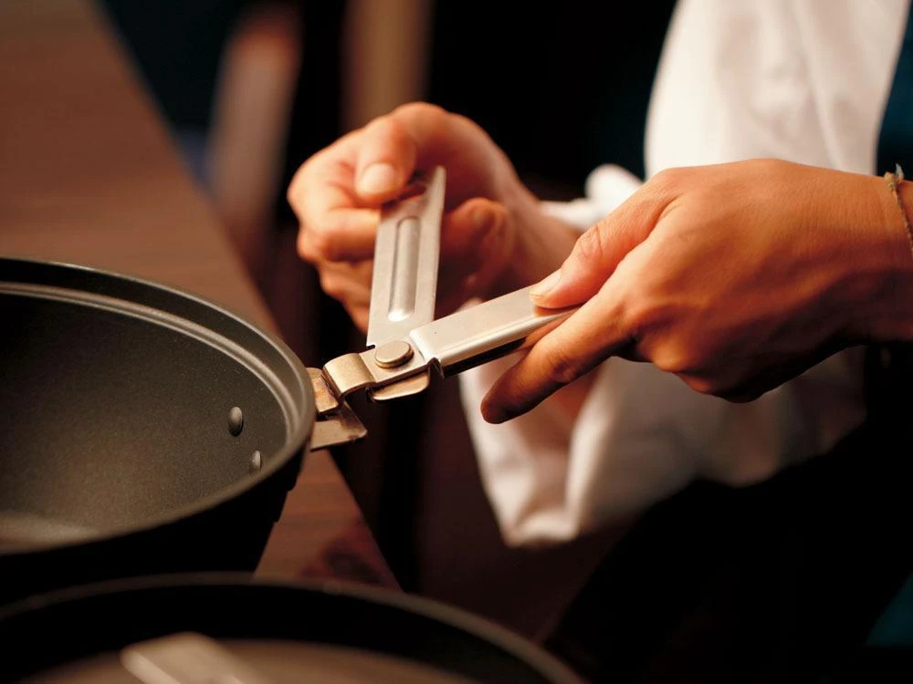 The Field Cooker Pro features a sleek, minimalist aesthetic with a modular design that maximizes efficiency. The set consists of a large pot, a specialized rice cooker, and a versatile sauté pan that cleverly doubles as a lid for the pot. Integrated foldable handles ensure that the entire system packs down compactly for transport.