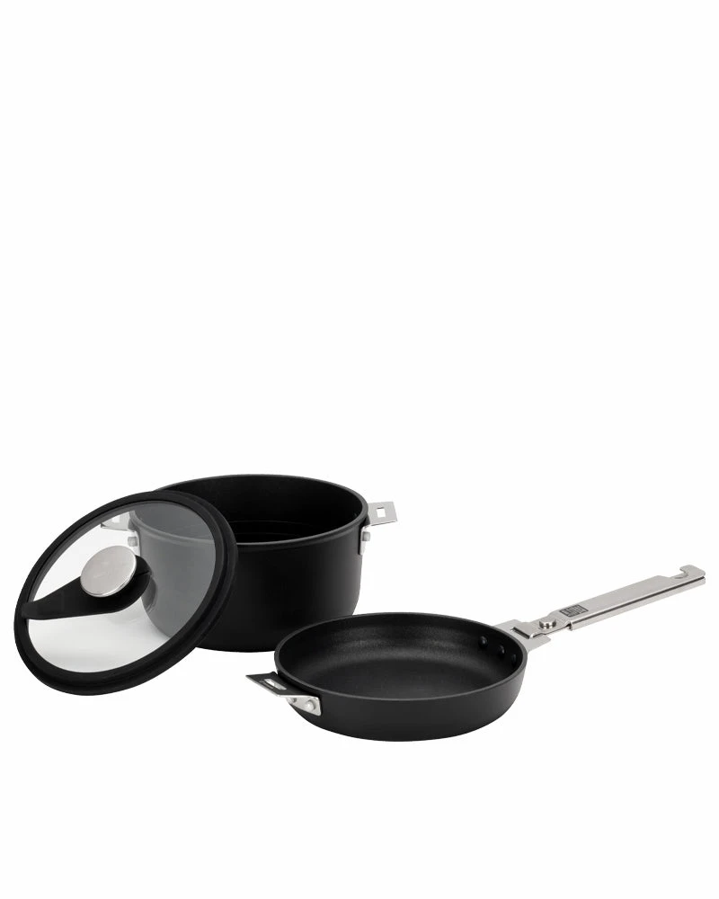 Designed in Japan, the convertible Home & Camp Cookset 19cm is a multi-piece cookware solution that can be used either at home or at the campsite. Combine the elements to create a stockpot, dutch oven, or frying pan to meet your cooking needs. Best suited for stovetop cooking, an included glass lid allows increased visibility for meal preparation. The pot and frypan nest into one another with an enclosed strap for security and carrying case for storage. Pair the Home & Camp Cookset 19cm with the