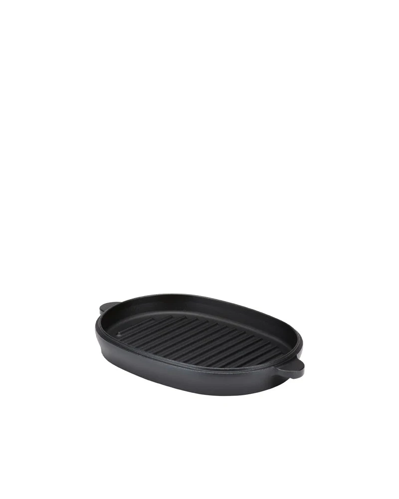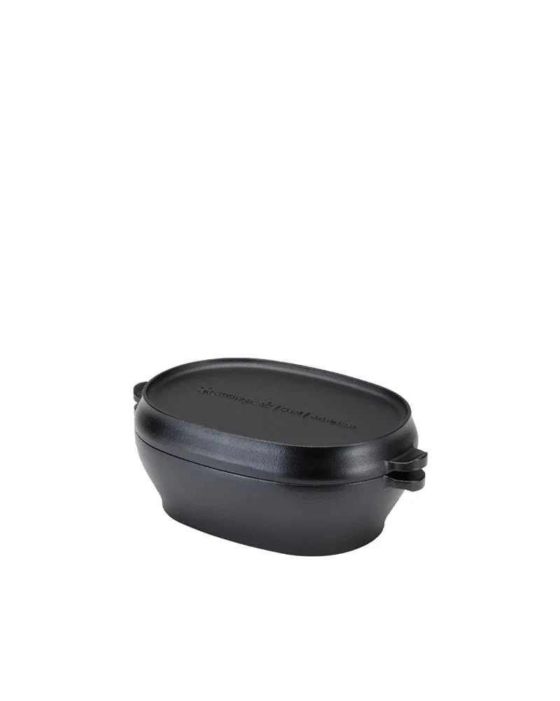 The Micro Oval features a sleek, matte black finish that develops a natural non-stick patina over time. Its unique oval geometry is perfect for stewing proteins or baking artisanal small-batch breads. The innovative lid is designed to be flipped, transforming instantly into a high-performance small griddle for searing sides or morning eggs.