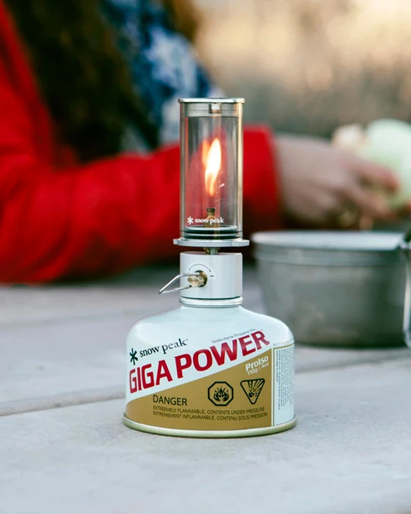 The Mini Flame is a small lantern. The Mini Flame is compact, lightweight, and has low fuel consumption. It features a glass globe and flame dial. To use, attach to fuel canister, turn the fuel dial, and ignite with flame at the bottom.