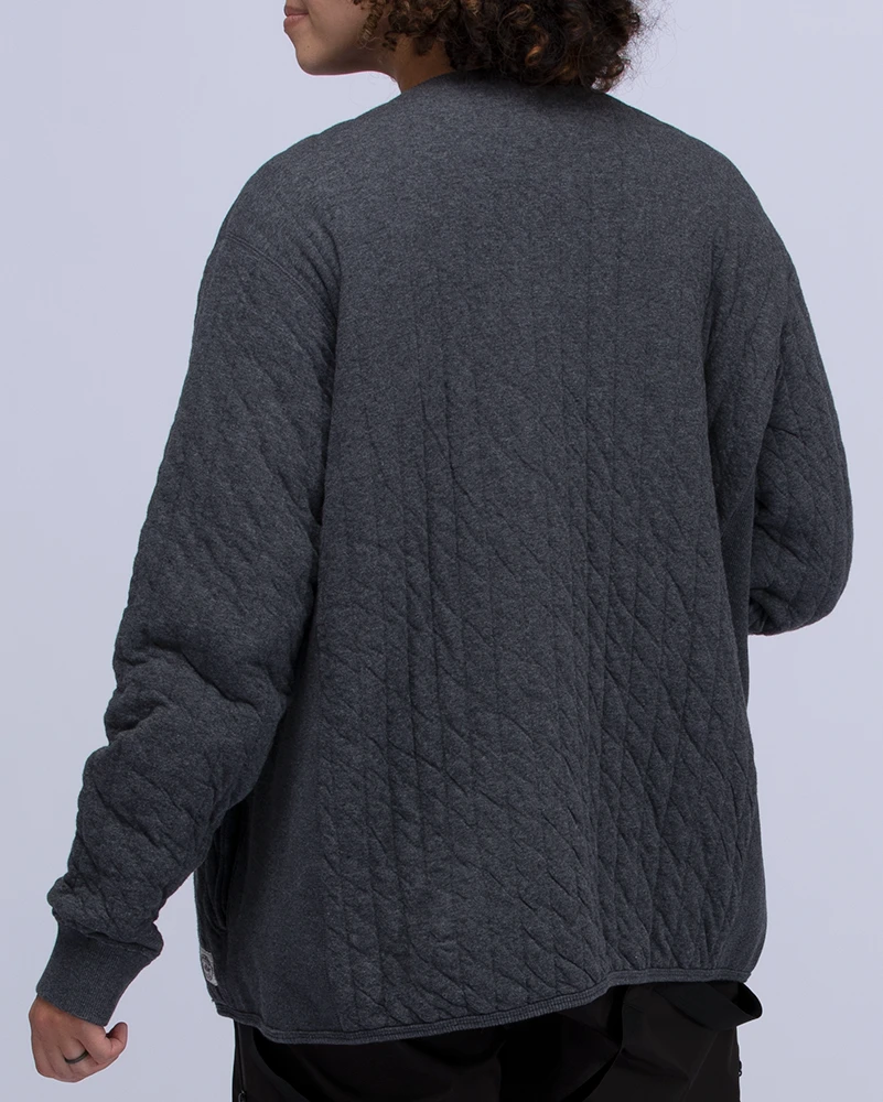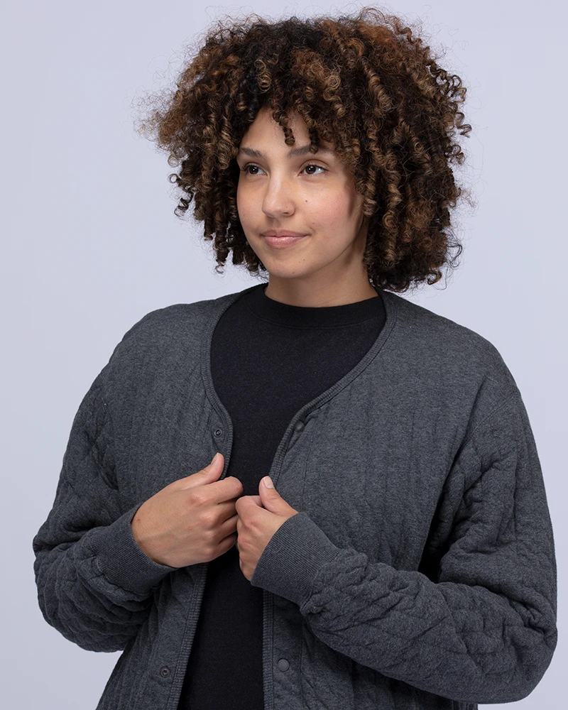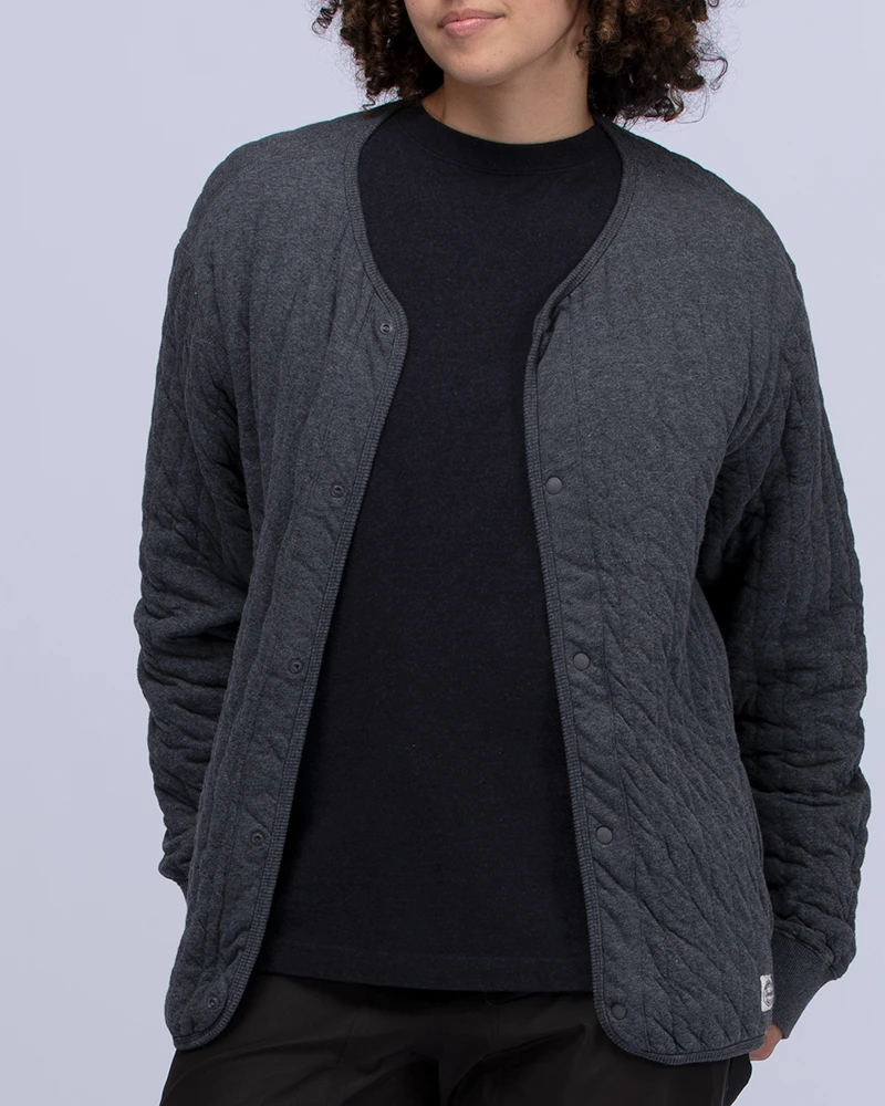 The Natural Warm Stretch Cardigan in Charcoal Grey is the perfect fusion of loungewear softness and outdoor functionality. Featuring a distinct quilted texture, this cardigan is crafted from 100% stretchy cotton to provide warmth without restricting your movement. Its dark heather charcoal finish offers a versatile look that transitions seamlessly from home to the city.