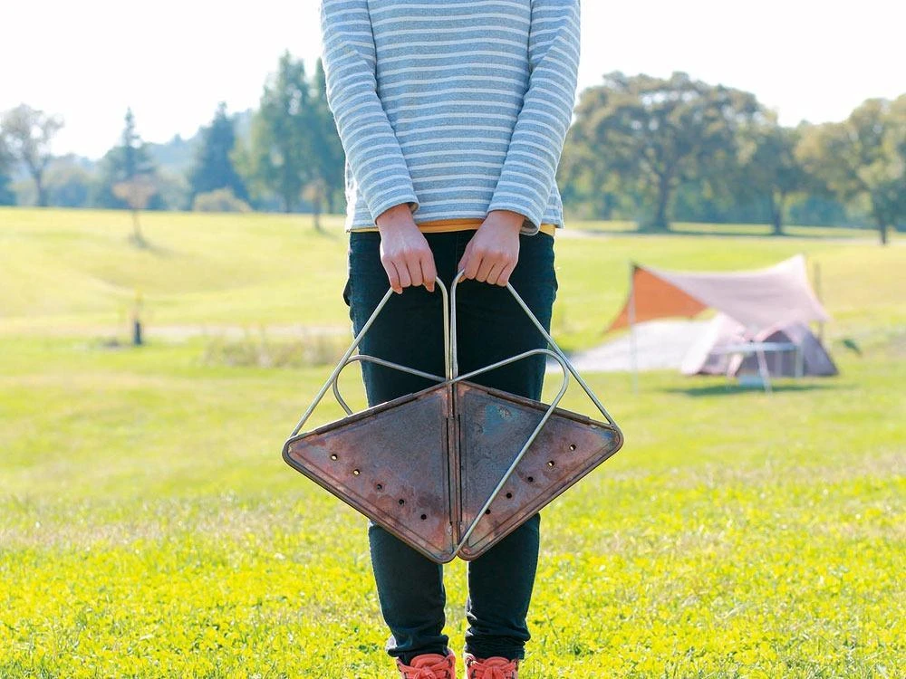 Designed and manufactured in Niigata, Japan the Pack & Carry M Fireplace is made of durable stainless steel. Use the Pack & Carry Fireplace as the centerpiece of gatherings in your backyard or the campfield. The fireplace folds flat for easy transportation and storage, and integrates with a variety of cooking and grilling accessories for an all-in-one fire pit solution. Each purchase includes one fireplace and a nylon carry case. Pair the Pack & Carry M Fireplace with theÂ