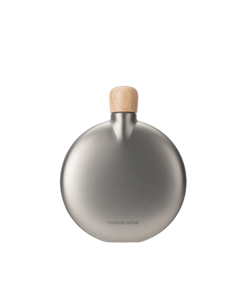 Crafted from high-grade titanium, this flask features a sleek, matte circular body that fits comfortably in the palm or pocket. The natural wood cap provides a warm, tactile contrast to the industrial metal, ensuring a secure and stylish seal. Because titanium is chemically inert, there is zero metallic taste or flavor residue—preserving the integrity of your liquor from the first pour to the last.