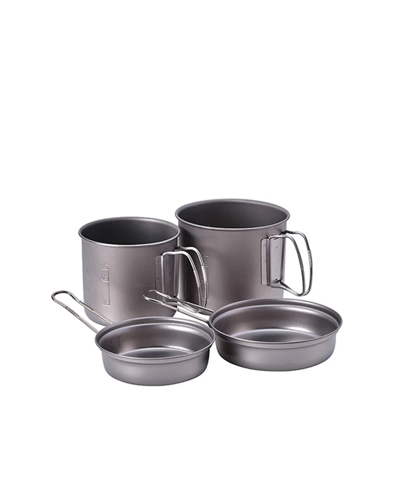 Crafted from ultralight Japanese titanium, the Trek Combo is a four piece cookset. Use it to cook meals for groups in the backcountry or campsite. The Trek Combo Titanium offers a combined 2.3 liters of capacity and the nesting pieces are compact enough to easily fit in any backpack. Pair the Trek Combo with the