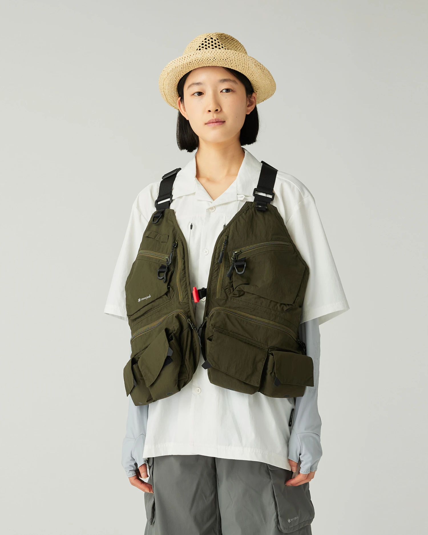 Designed with functional aesthetics, the shirt features a large open collar and a classic button-front closure. Specialized storage includes dual zippered chest pockets and an additional patch pocket on the left breast, perfect for securing gear. To ensure maximum comfort in high temperatures, integrated ventilated panels are strategically placed across the back and under the arms, while side hem slits provide unhindered freedom of movement.