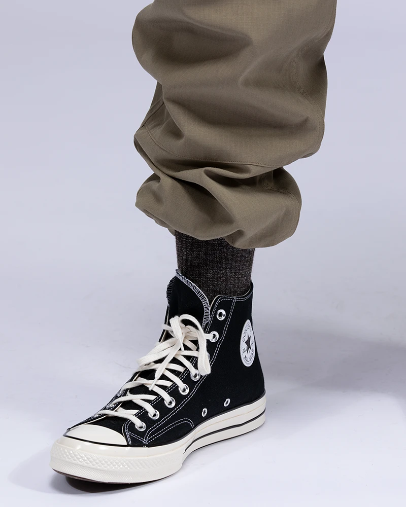 The Takibi Overalls are designed with an oversized fit, with the hem hitting below the ankle. We recommend taking a size down for an oversized fit. The models stand 6′ and 5’10 respectively and wear size L.