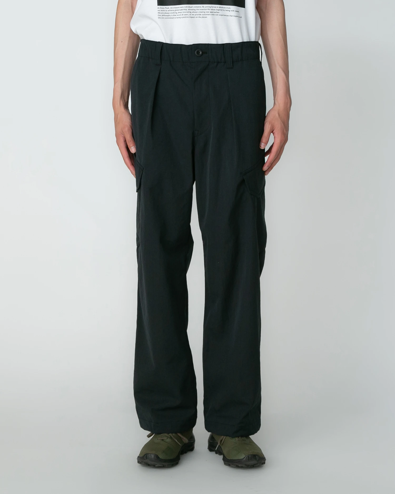 The Takibi Weather Cloth Pants are lightweight, fire-resistant pants crafted from durable Aramid for both urban and outdoor wear. Inspired by Royal Navy combat pants, they offer a relaxed fit with a buttoned elastic waistband and drawcord for a secure yet comfortable fit. The straight-leg design tapers slightly at the ankle, where an elastic hem provides adjustability.
