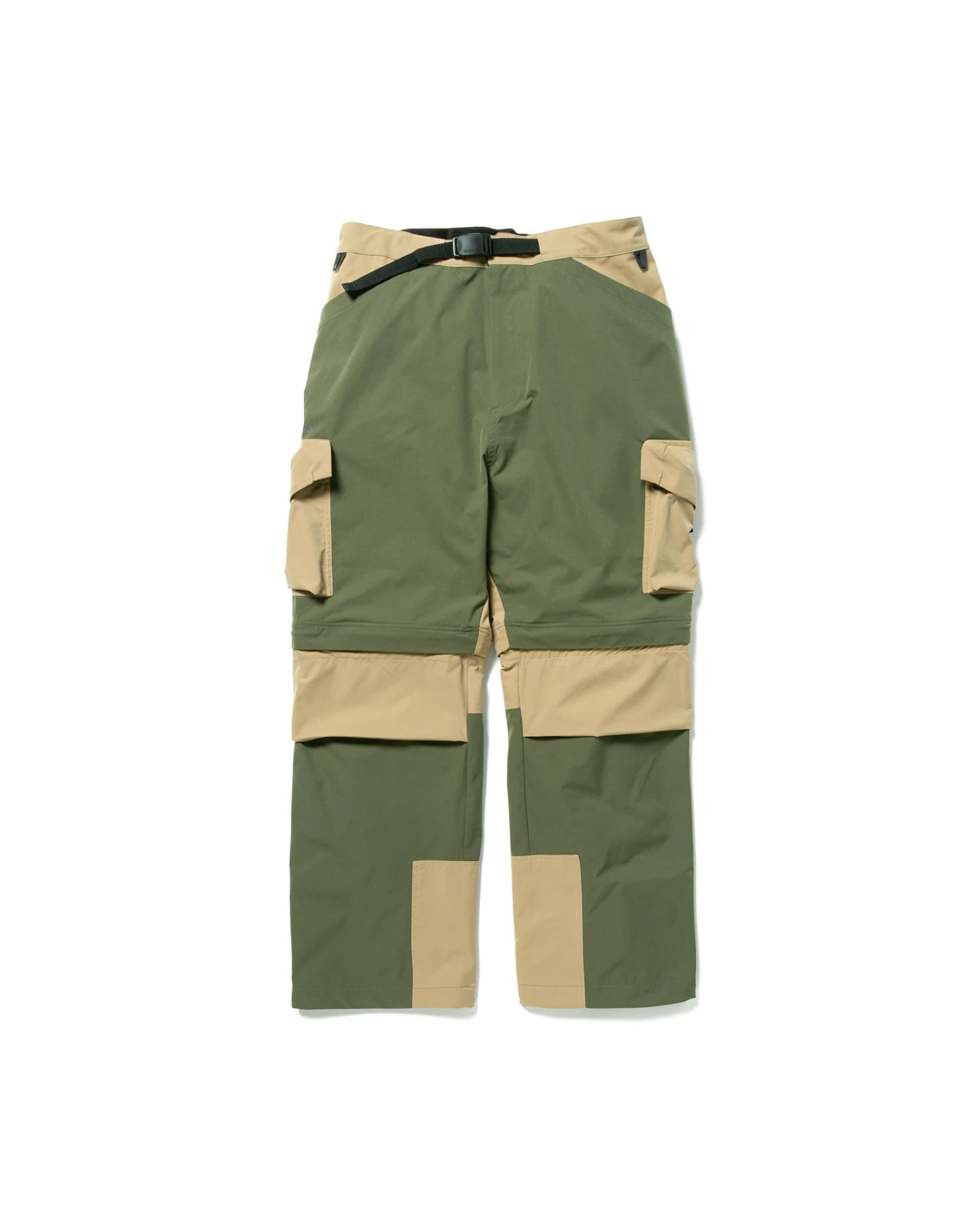The pants feature a front-opening buckle belt for easy waist adjustment and ventilation at the back to promote airflow. Reinforced fabric at the inner hem enhances durability, while a drawcord allows for a customizable fit. With ample storage, including side pockets and cargo pockets on both sides, these pants combine functionality and convenience for outdoor adventures.