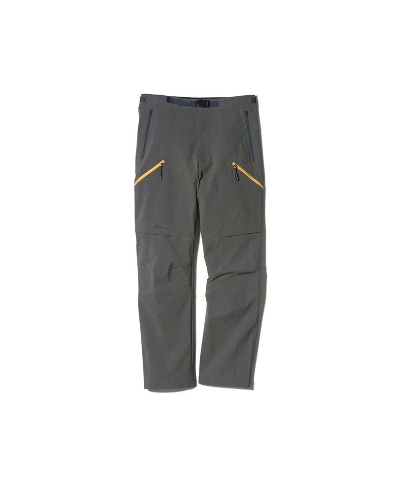 The Stretch River Pants are water-resistant active technical pants. The pants are made of polyester with a water-repellent finish that offers durable stretch for increased mobility. The Stretch River Pants feature a button waist with an enclosed belt, dual zipper side pockets, dual zippered pockets at the thigh, and ventilation on the back of the pant.
