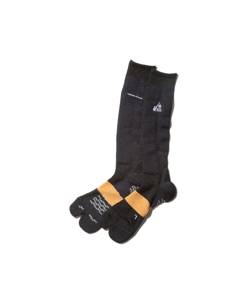The Washi × Merino Wool Guide Long Socks are ribbed split-toe socks. The socks are made of a blend of wool, polyester, and nylon. The Washi × Merino Wool Guide Long Socks feature a ribbed body, split-toe, and gripped bottom footpad.
