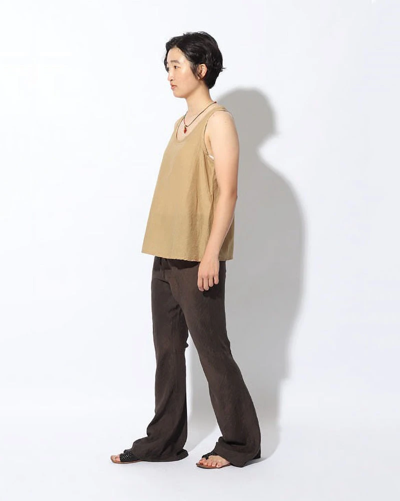 The Hand-Woven Cotton Silk Tanktop is more than just a layer; it is a celebration of traditional techniques and tactile beauty. Featuring a unique crinkled texture, this piece is meticulously crafted to deepen the connection between the wearer and the natural world.